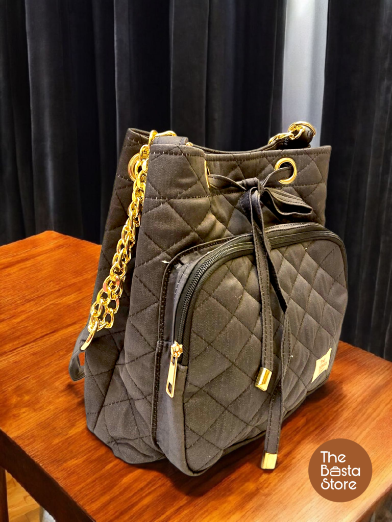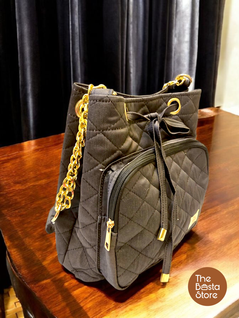 This everyday handbag for women features a jet black shade that feels timeless and versatile. The bucket-style design makes it suitable for regular use without feeling bulky.