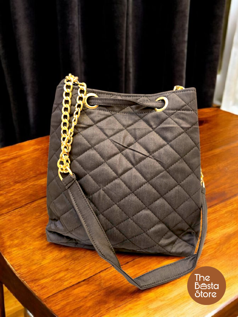 Everyday Handbag for Women | Jet Black Quilted Bucket Crossbody